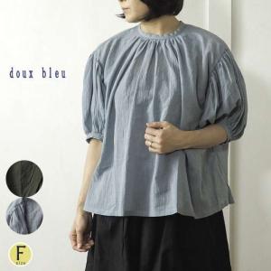 doux bleu ドゥーブルー ボリューム袖スラブローンブラウス 抜群のエアリー感で軽くて涼しいきれいめブラウス レディース ポワン袖 大人かわいい 春 夏