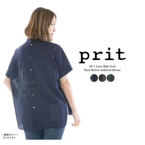 Prit プリット 80/1ローンハイネックバックボタンギャザーブラウス P82342★