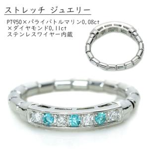 パライバトルマリン 0.08カラット ダイヤモンド 0.11カラット PT950リング・指輪 ストレッチジュエリー 稀少石 1点もの /Ycollectionワイコレクション/送料無料