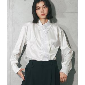 ブラウス シャツ アシンメトリー襟総柄パール付きブラウス レディース