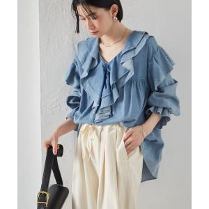 ブラウス シャツ ビッグカラーフリルデニムブラウス レディース