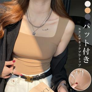 パット付きスクエアネックブラトップ カップつき タンクトップ インナー レディース