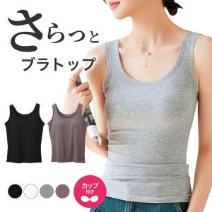 さらっとブラトップ タンクトップ レディース インナー リブカップ付きタンクトップ