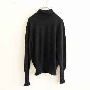 【2024/定価2.5万】ホームスパン homspun *梳毛タートル*Mブラック杢ウールニットタートルネックセーター(2-2508-388)【91I52】