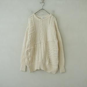 ハグオーワー Hug O War *ウールカシミヤ混ニットプルオーバー*アイボリーケーブル編み透かし編セーター(25-2510-228)【60K52】