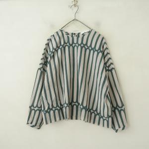 ミナペルホネン mina perhonen *finger stripe コットンブラウス*38薄手プルオーバーグリーングレージュ(27-2509-170)【62J52】