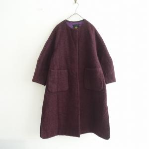 ドゥロワー Drawer *ウール混ブークレーノーカラーコート*38毛エンジパープル赤紫ロング羽織アウター上着(kjk25-2510-201)【50K52】