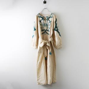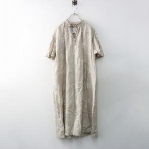 マガリ MAGALI TSUBOMI リネン バルーン袖ペザントワンピース ベージュ┃日本製 チュニック ドレス 刺繍デザイン 麻【2400014673203】