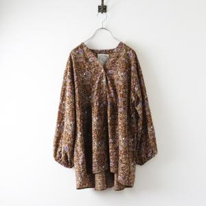 美品 ビアズリー BEARDSLEY ペイズリーギャザーブラウス F\ブラウン プルオーバー シャツ Vネック フレア【2400014670349】
