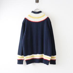 極美品 2023AW タオ コムデギャルソン tao COMME des GARCONS ハイネック切替ケーブルニットセーター S ネイビー┃【2400014677331】