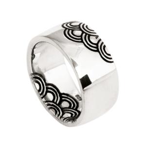 和柄 青海波リング メンズ 指輪 シルバー925 平打ち 和風 波模様 シンプル 太め ゴツめ 幅広 有料刻印可能
