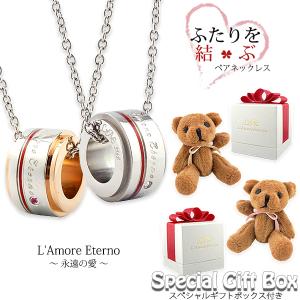 ペアネックレス ステンレス 刻印無料 リング型 ローズゴールド ふたりを結ぶ糸 赤 金属アレルギー対応 レディース メンズ 安い ネックレス ペア 名入れ