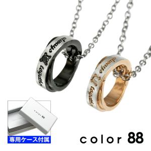 ペアネックレス ダイヤモンド リング アレルギー対応 ステンレススチール ブラック ピンクゴールド メッセージ入り メンズ レディース おそろい アクセサリー
