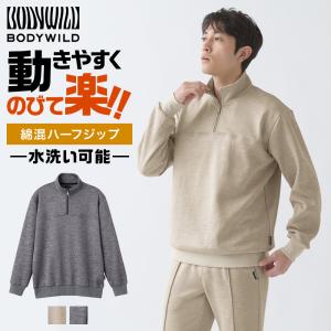 グンゼ ボディワイルド スウェット ハーフジップ メンズ 洗える 秋冬 カジュアル 綿 コットン ストレッチ 素材 セットアップ BODY WILD S M L 紳士 男性 BDW349