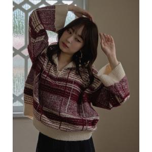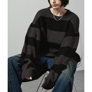 セーター ニット 「Alfred Alex」ボーダーバルキーワッフル オーバーサイズニット メンズ レディース