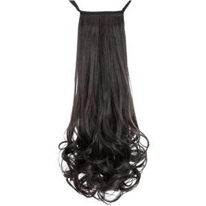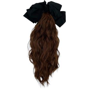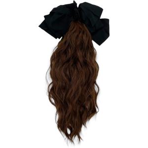 ポニーテールウィッグ リボン 蝶結び クリップ式 カール 巻き髪 自然 エクステ つけ毛( ブラックxライトブラウン)