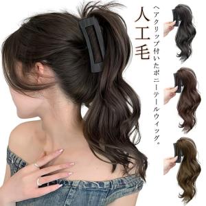 ウィッグ ポニーテール ヘアグリップ付き ロング ポニーテールウィッグ ワンタッチ エクステ 自然 部分 つけ毛 ウェーブ カール ポニーテールウィッ