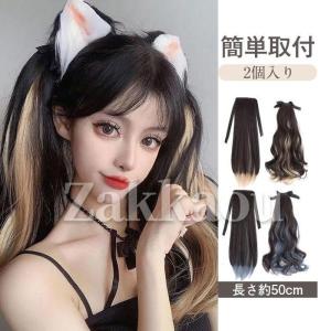 ポニーテール レディース ツインテール グラデーション 簡単取付 おしゃれ おすすめ 髪飾り 二個入り イメチェン かわいい ハロウィン
