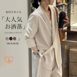 セットアップ レディース パンツスーツ 2点セット ジャケット ビジネススーツ ワイドパンツ ハイウエスト オフィス ストレートパンツ コーデ 秋 冬 春 長袖
