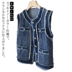 レディース ツイード ベスト アウター ジャケット ジレ ノースリーブ フリンジ 袖なし 大人 カジュアル お洒落 春 秋 母親 ママ 入学式 韓国