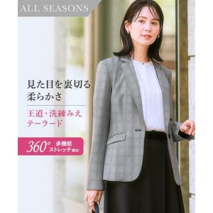 アウター ジャケット レディース テーラードジャケット 春 秋 S-3L 送料無料 洗える ストレッチ チェック柄 グレー 黒 単品 上下別売 セットアップ ニッセン s0