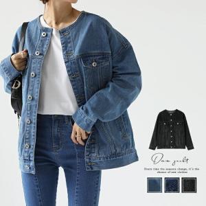 ノーカラー デニムジャケット アウター ビッグサイズ ゆったり 秋 冬 春 ママコーデ レディース カジュアル 20代 30代 40代 50代 デニム