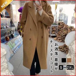 チェスターコート レディース 秋 冬 ウール混コート ロング丈 アウター ウール混 ゆったり 体型カバー 大きいサイズ コート カジュアル 40代 50代 ママ 着痩せ