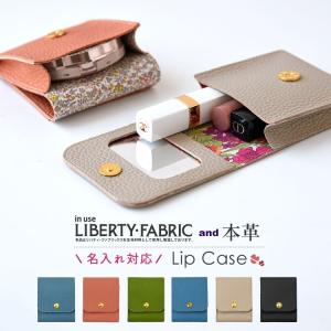 リップケース ミラー付き 鏡 名入れ 本革 コスメポーチ 化粧ポーチ マルチケース ミニ 口紅 小物入れ おしゃれ シュリンクレザー 花柄 リバティ生地 CallaBella
