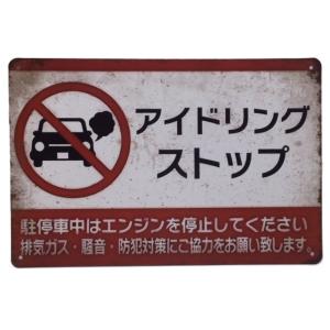 送料無料 アイドリングストップ 昭和レトロ 金属製 メタルサインプレート ブリキ看板 防犯 マナー 注意書き 標識 駐車場 自動車 クラシック ビンテージ