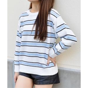 ニット セーター 「spiritoso」クルーネックルーズボーダーニット レディース
