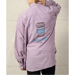 ブラウス シャツ 「MODISH GAZE」カフェロゴバックプリント長袖シャツ(CP) レディース