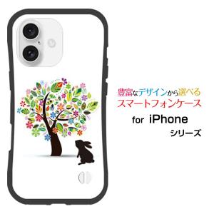 スマホケース iPhone 16 耐衝撃 ハイブリッドケース ストラップホール付 花とうさぎ 花柄 フラワー 木 うさぎ ウサギ シルエット イラスト かわいい