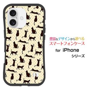 スマホケース iPhone 16 耐衝撃 ハイブリッドケース ストラップホール付 猫柄(ベージュ×ブラウン) ネコ模様(ねこ) 可愛い(かわいい) 水玉 ドット