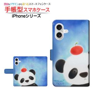 スマホケース iPhone 17 クリアケース付 手帳型 ケース カメラ穴対応 パンダとリンゴ やのともこ デザイン イラスト アニマル ほっこり メルヘン