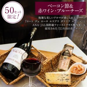 複雑な美しいアロマが感じられる赤ワインとANA・JAL国際線ファーストクラス機内食にも採用されたチーズ ベーコン節&赤ワイン・ブルーチーズ set(han-cw-3)