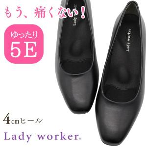 レディーワーカー パンプス レディース 靴 黒 ブラック 幅広 5E 痛くない スクエアトゥ 4cm 消臭 フォーマル 冠婚葬祭 歩きやすい 走れる Lady worker LO-17460