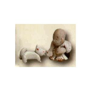 手作りの陶人形 一休さんと柴犬 縁起 癒し瀬戸焼人形