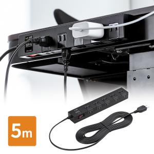 電源タップ 延長コード 5m コンセント タップ テーブルタップ マグネット 固定 抜け止め 雷ガード 一括スイッチ 節電 7個口 5個セット 700-TAP034--5