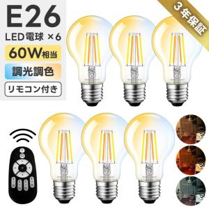 LED電球 E26口金 6個セット フィラメント電球 調光 調色 リモコン付き 6W 60W形相当 LEDランプ 昼光色 昼白色 電球色 遠隔操作 省エネ 節電 常夜灯 照明器具