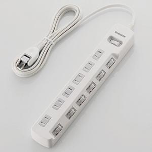 エレコム 一括&個別スイッチ付 雷ガードタップ 2P・6個口 ホワイト 2.5m T−K8A−2625WH 1個