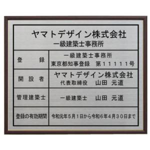 一級建築士事務所登録票 ステンレスプレート 木地色額入り おしゃれな一級建築士事務所看板
