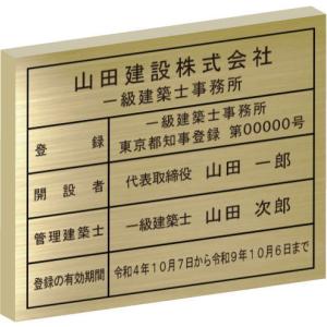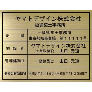 一級建築士事務所登録票 ステンレスプレート ゴールド額入り おしゃれな一級建築士事務所看板