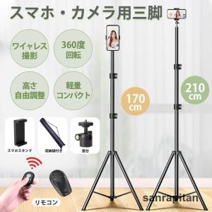 スマホ 三脚 最大高172cm2 in 1 自撮り棒三脚 450g軽量 アルミニウム合金4段階伸縮 360角度調節 電話ホルダー付きスタンド す
