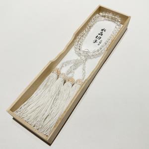念珠・数珠 二輪念珠水晶切子 7mm 共仕立 正頭 白 細桐箱 じゅず ギフト 贈り物 贈答 法事 葬式 葬儀 法要 感動葬儀。 FUNE