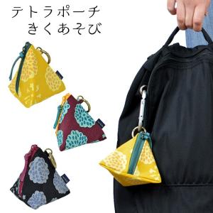 亥之吉 手捺染 テトラポーチ きくあそび 黄 黒 職人のハンドプリント 三角ポーチ コスメポーチ バッグチャーム 京の染め屋 京美染色オリジナル 和モダン 和柄