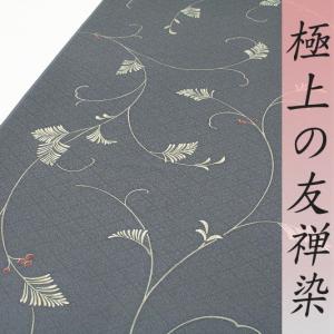 在庫処分 小紋 飛び柄 万葉染織 灰藤色 楓 蔦 本加工友禅 摺り友禅 正絹 丹後ちりめん 綸子 新品 未仕立て 反物 カジュアル お洒落着 和装 着物 r1214