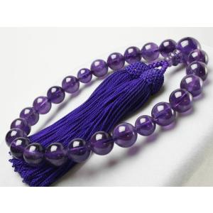 男性用高級京念珠・数珠 紫水晶 アメジスト 共仕立 22珠 正絹頭付房 KM034