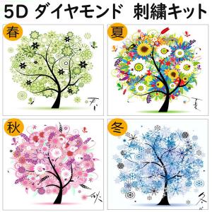 5D ダイヤモンドアート セット 四季の木 春 夏 秋 冬 ビーズ絵画 初心者 簡単 DIY 工作 人気 キット ツール 手作り 図案 楽しい インテリア ギフト 送料無料