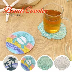 ビーズコースター ハワイアン ハワイ ビーチ シェル ヤシ ホヌ 貝 マリン カラフル コースター キラキラ レストラン インテリア アジアン雑貨