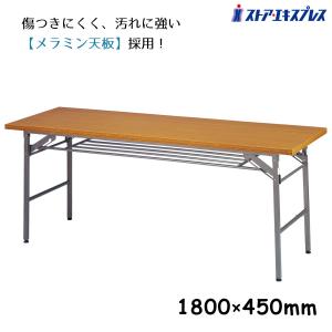 長机 会議用テーブル 会議テーブル 1800_折りたたみテーブル 棚付 180×45cm チーク色 1台_61-339-1-1_7190-29